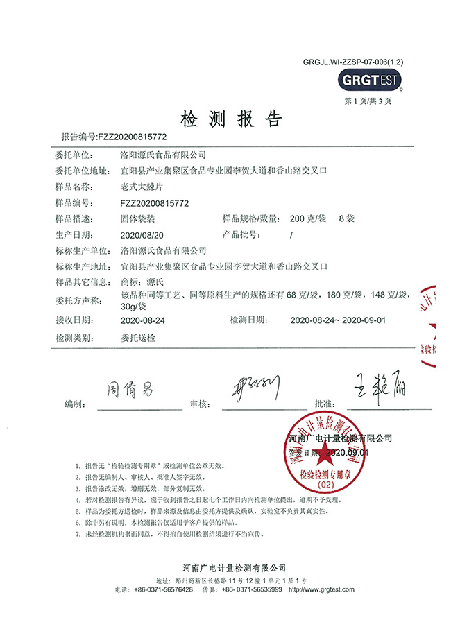老式大辣片外檢 發布時間:2021-03-02作者:來源:洛陽源氏食品有限公司點擊:5430 上一篇:食品安全管理體系認證證書 下一篇:營業執照 分享到:0 用手機看 拍下二維碼,信息隨身看 試試用微信掃一掃,在你手機上繼續觀看此頁面。